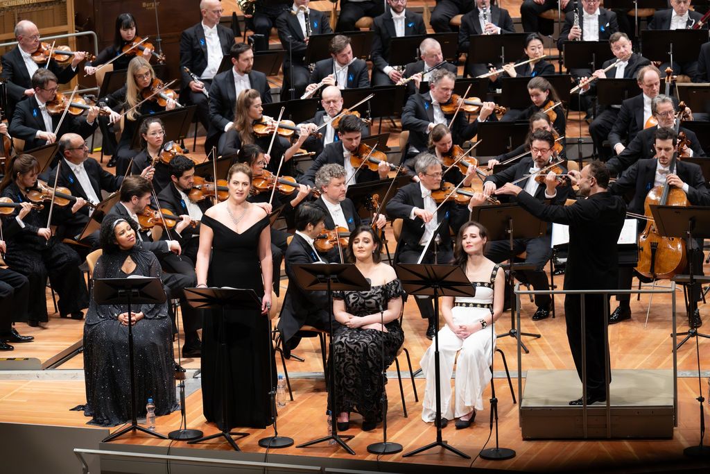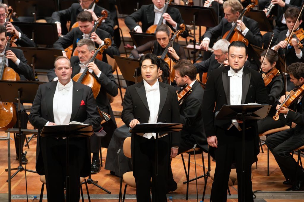 Les voix solistes étant essentielles, elles sont au premier rang devant l’orchestre, car il ne s’agit ni d’un oratorio, ni d’une symphonie avec chœurs, mais d’une « chorale-vocale-symphonie » tout ensemble comme souligné plus haut, où chacun est part d’un ensemble, le soliste comme le dernier des choristes, mais aussi le chef. En l’occurrence Kirill Petrenko notamment le deuxième soir, refusera avec vigueur que l’ovation tourne à l’adoration du chef-dieu, mais veillera à toujours se présenter au cœur du collectif.