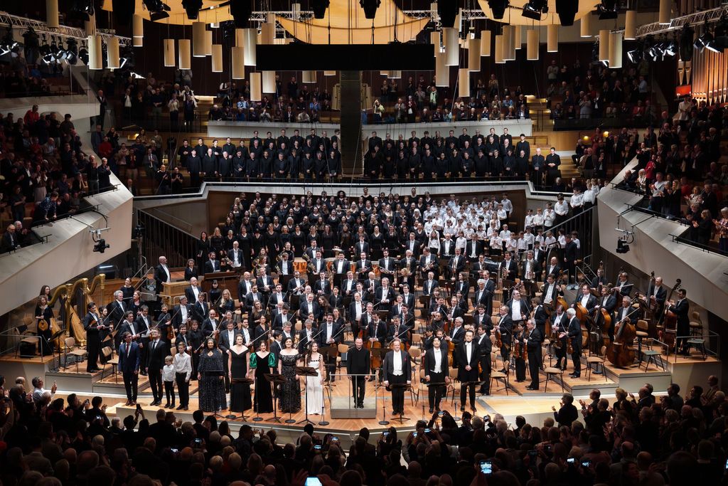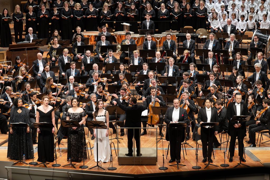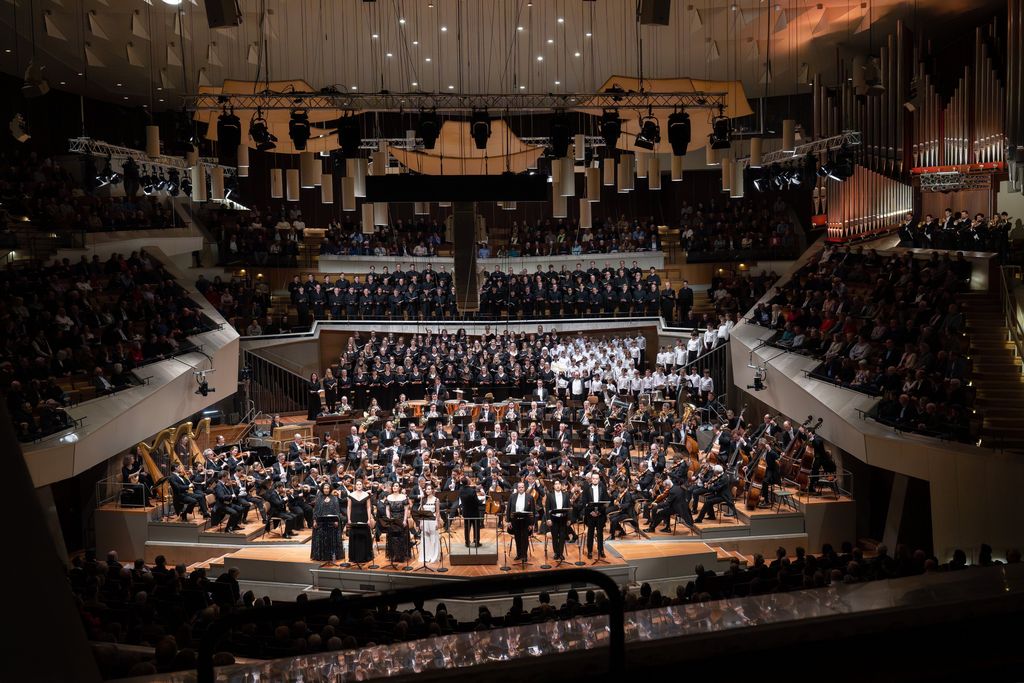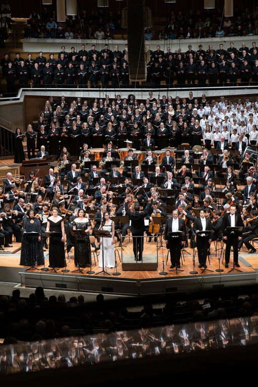 As the solo voices are essential, they are in the front row in front of the orchestra, because this is neither an oratorio nor a symphony with choirs, but a ‘choral-vocal-symphony’ as a whole, as emphasised above, where everyone is part of an ensemble, from the soloist to the last of the choristers, but also the conductor. In this case, Kirill Petrenko, particularly on the second evening, vigorously refused to allow the ovation to turn into adoration of the conductor-god, but always ensured that he remained at the heart of the collective.