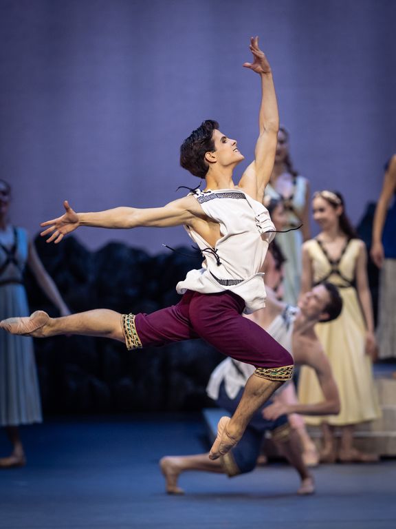 Chaereas’s ambivalence allows for divergent interpretations, and Alessandro Frola offers a markedly different yet equally persuasive reading. A leading figure of the Hamburg Ballet and a long-standing interpreter of John Neumeier, Frola had previously danced Dionysius when Kallirhoe entered the repertoire and here makes his debut as Chaereas. He emphasises the character’s guileless, almost pastoral quality—a kind of Sicilian Colas—bringing particular depth to moments of stillness and silence. His phrasing in adagio passages is eloquent, his classicism unfussy, and in Act II he unleashes a more expansive, almost animal physicality in the grand manège. The role allows him to deploy his impressive interpretive versatility while offering generous support to Sinthia Liz, the young Brazilian soloist making her long-delayed debut after injury. Less assured than Trenary, she brings a fragile immediacy to Callirhoe that proves touching.