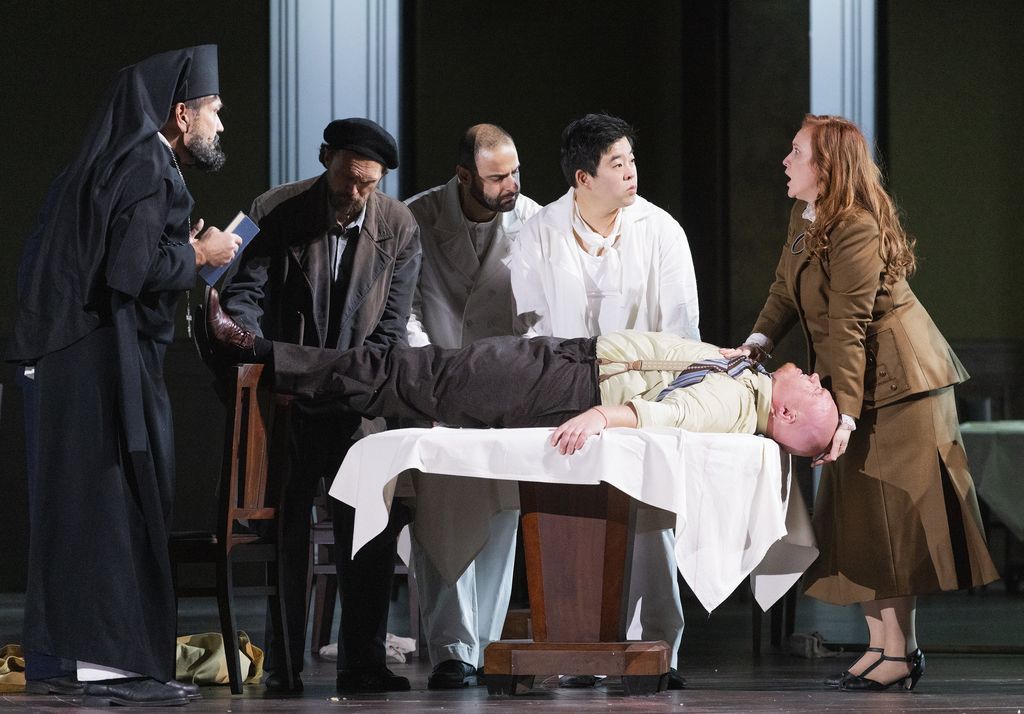 Di fronte, l'altro tenore, Sergej, è interpretato da Najmiddin Mavlyanov, che ha un timbro più lirico rispetto ad alcuni Sergej più potenti e aggressivi come John Daszak, il che lo avvicina un po' al suo “rivale” Zinovy. Certo, in questo canto c'è qualcosa di meno opaco, di più deciso, di più vigoroso, senza avere il profilo del “maschio” pieno di potenza ed erotismo che si può vedere anche in alcune produzioni. Al contrario, la messa in scena cancella questo aspetto per avvicinare i due personaggi e renderli delle pietose variazioni di maschi provinciali che litigano in mutande per la femmina, una Katerina assetata di “altro” che deve accontentarsi di questi corpi in boxer/canottiera che non fanno proprio sognare. Rimane in lui, nell'espressione, nel fraseggio, qualcosa di un po' grezzo, ma non troppo, un po' primitivo, ma non troppo, che colora la sua interpretazione e che mostra un vero lavoro sull'espressione e sul modo di cesellare il testo.