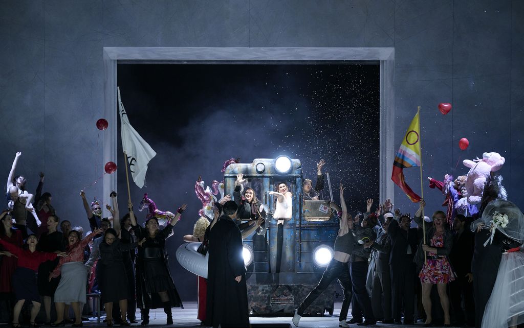 Ainsi du château de Naïna, devenu « dans le métro » une boite de nuit queer qui attire tout ce qui bouge et veut jouir sans entraves et tout ce qui n’est pas exactement dans la norme, un temple des plaisirs permis dans le monde du dessous, interdits dans le monde du dessus. À côté aussi quelques échoppes dont un magasin de robes de mariées qui fascinent Ratmir au point de s’en vêtir et de trouver sa véritable nature. Le fait d’avoir confié Ratmir à un contreténor au lieu du contralto prévu est aussi un choix intéressant dans cette perspective, parce qu’il accentue les ambiguïtés et les jeux de genre.