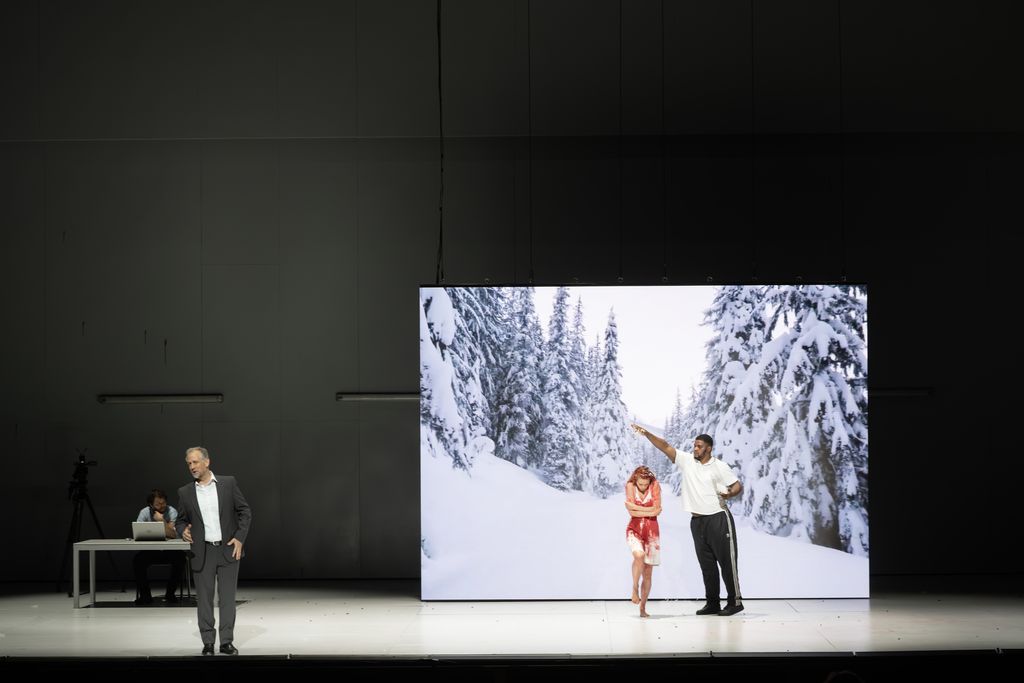Pas si drôle, si l’on comprend que Kratzer le fait ici tomber pour la première fois de toute sa carrière, lui qui crée des spectacles plutôt hyperscéniques avec utilisation de la vidéo ou du film (Tannhäuser, Rheingold) du théâtre dans le théâtre (Les Huguenots), du regard critique sur l’opéra (Meistersinger) quand il ne travaille pas dans l’hyperréalisme (Le Prophète) ou la science-fiction (L’Africaine)… Il fait du spectacle, et souvent du spectaculaire, c’est-à-dire qu’il donne à regarder