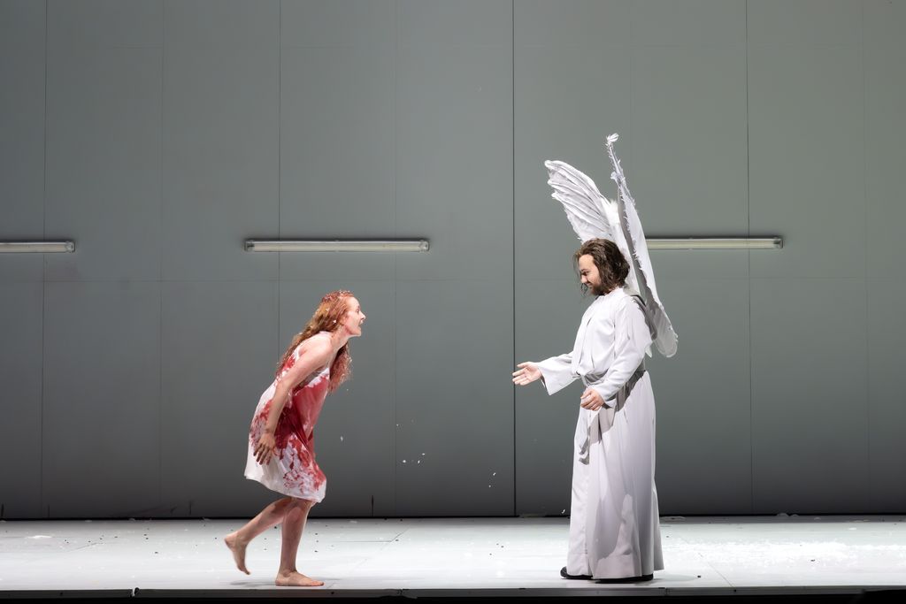 mais aussi – il triomphe – celle du contreténor russe Ivan Borodulin dans l’Ange (confié habituellement à un contralto), qui ouvre ou ferme les portes du Paradis, à la ligne très maîtrisée et surtout à l’émission claire, et doué d’une qualité de diction éminente (on comprend chaque mot, presque sculpté) et d’une belle projection. Confier ce rôle à un contreténor est évidemment un rappel à la tradition du XVIIIe et des castrats, et donc donner aussi une autre couleur au personnage, non dénué d’ailleurs d’ironie : un Ange à barbe, c’est rare dans l’iconographie !!!