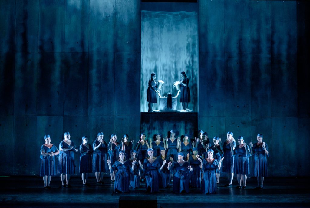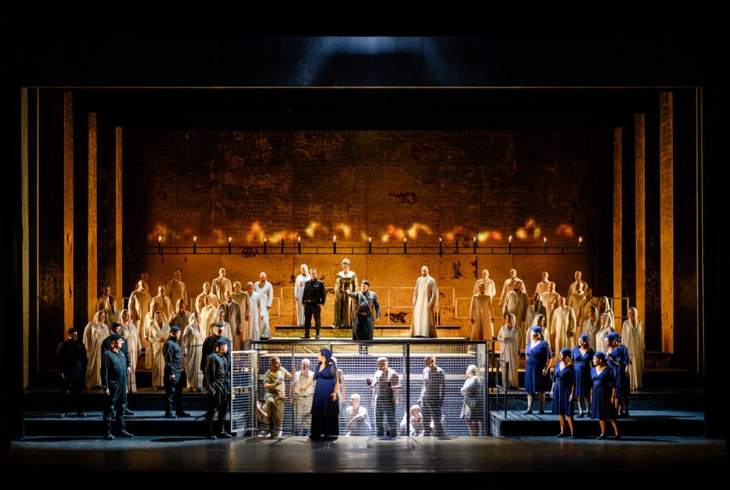 Heureusement, le chœur est là, admirablement bien en place et c’est finalement lui qui occupe l’espace scénique et musical. Techniquement très au point, il bénéficie en plus de scènes étagées qui comme les trompettes du triomphe participent à une certaine ivresse sonore qu’on était en peine de trouver ce soir-là.