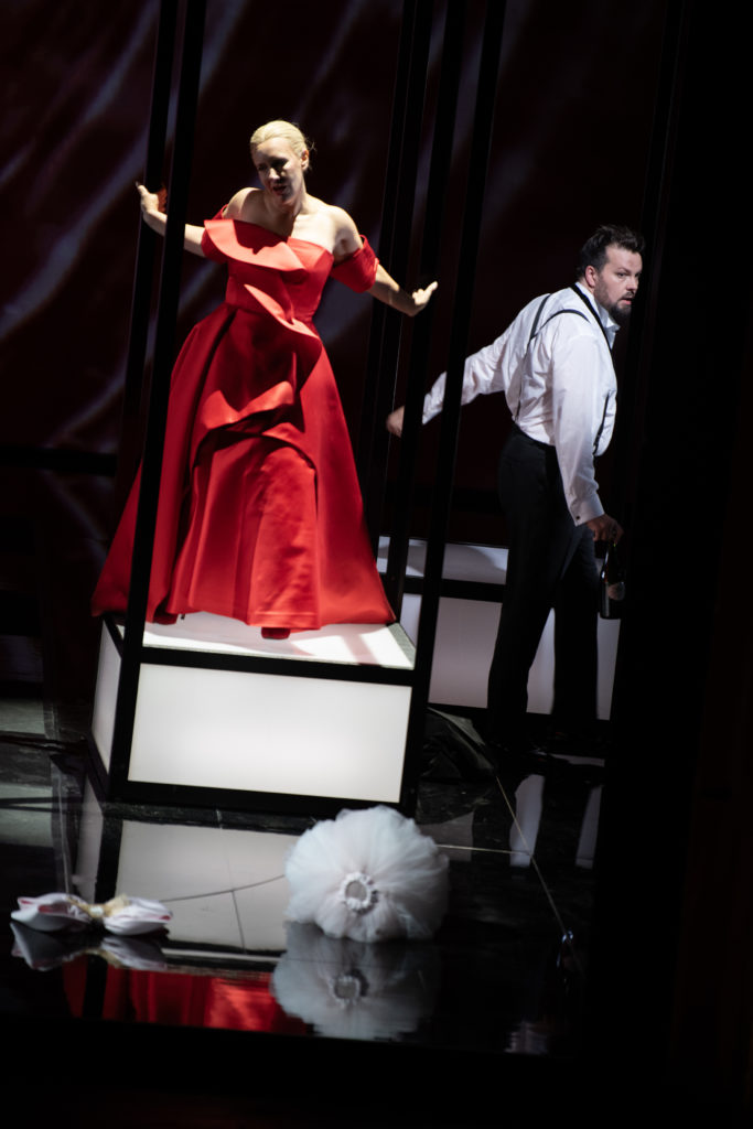 La Princesse étrangère est la maîtresse femme, la maîtresse du jeu y compris lorsqu’elle donne à Rusalka la robe de mariée qui la parera pour le bal. La Princesse étrangère sait qu’elle ne peut pas perdre (à défaut de gagner). C’est donc à un jeu de démolition sociale auquel on joue avec Rusalka, transfuge de classe, chien dans un jeu de quilles.