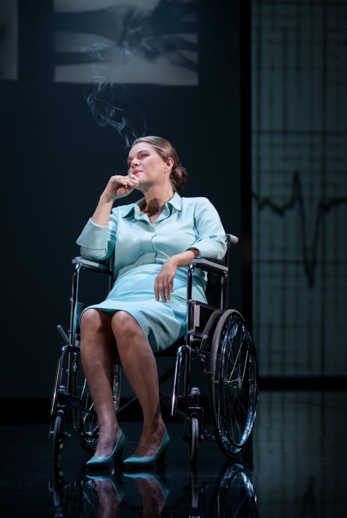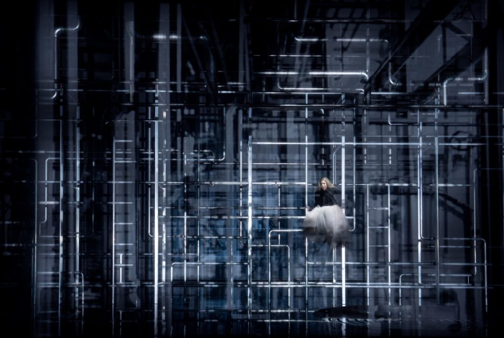 Ici, on voit alors, en vidéo, une remontée vers la surface qui rappelle celle de Bill Viola, maître des images de rituels et de la transcendance, pour la production Sellars de Tristan & Isolde à Bastille. D’autres images d’un autre plasticien de la scène succèdent à celle-ci puisque Netia Jones, par des lumières choisies, fait basculer le plateau dans l’univers glacé de Robert Wilson : lumières tranchantes et froides, ombres diverses.