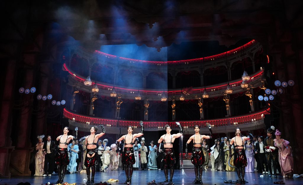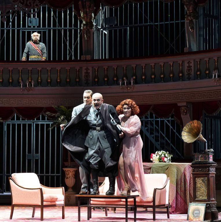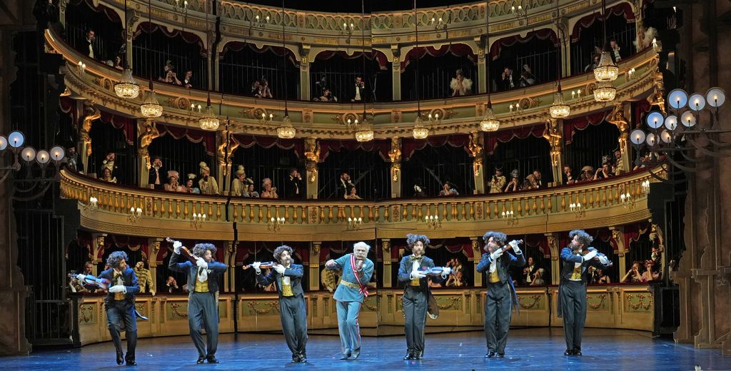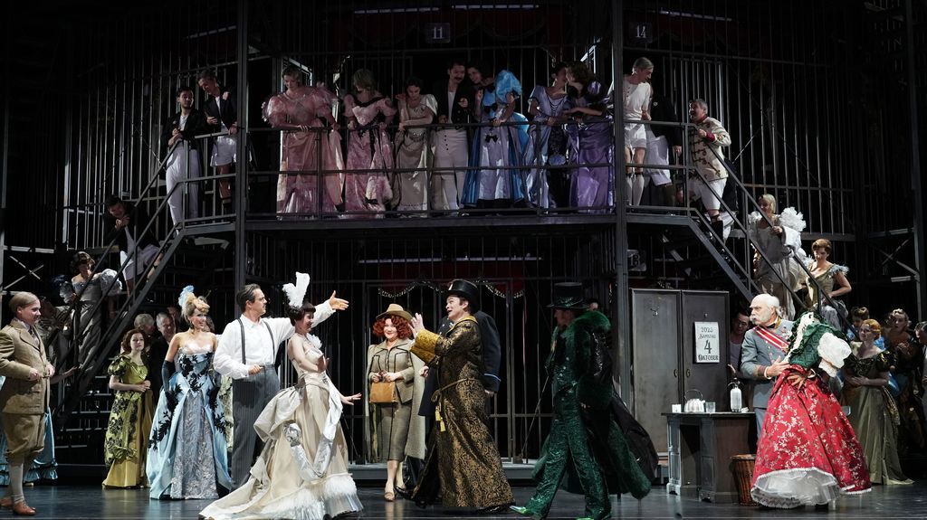 Herheim, magicien du théâtre, prodigue d'artifices, constructeur d'arcades baroques éblouissantes, est celui qui tient fermement les rênes du spectacle pendant les passages les plus longs, celui qui sait utiliser certaines figures (l'amant/chanteur Alfred, ici une sorte de galant du cinéma muet, ou de ténor de l'âge d'or du gramophone ; le directeur de la prison Frank, avec ses lunettes et la figure désarmante de Krešimir Stražanac pour l'incarner ; la figure même, toute en exagération divine, de Rosalinde) comme vecteurs de détente comique, qui établissent un équilibre avec la basse continue de la terreur qui parcourt l'ensemble des scènes. Le talent de Herheim, malgré ce que ceux qui ont lu ces lignes jusqu'ici auront probablement déduit, ne réside pas dans sa volonté de nous présenter Die Fledermaus comme une œuvre sérieuse ou profonde, mais dans le maintien d'un juste équilibre entre la frénésie festive qui émane de la musique de Strauß et la proposition de fond, qui est celle d'une lecture historique, et donc d'un pari sur la mémoire, à une époque, la nôtre, où les êtres humains abandonnent la mémoire et avec elle les enseignements qu'elle nous apporte, et dans une œuvre, Die Fledermaus, qui nous enseigne apparemment le caractère embarrassant de la mémoire et qui semble proposer parmi ses slogans ceux de l'oubli (Glücklich ist, wer vergisst) et de l'irresponsabilité (Champagner hat´s verschuldet), même si presque rien de ce qui est dit dans le livret magistral de Carl Haffner et Richard Genée ne peut être compris au sens littéral.