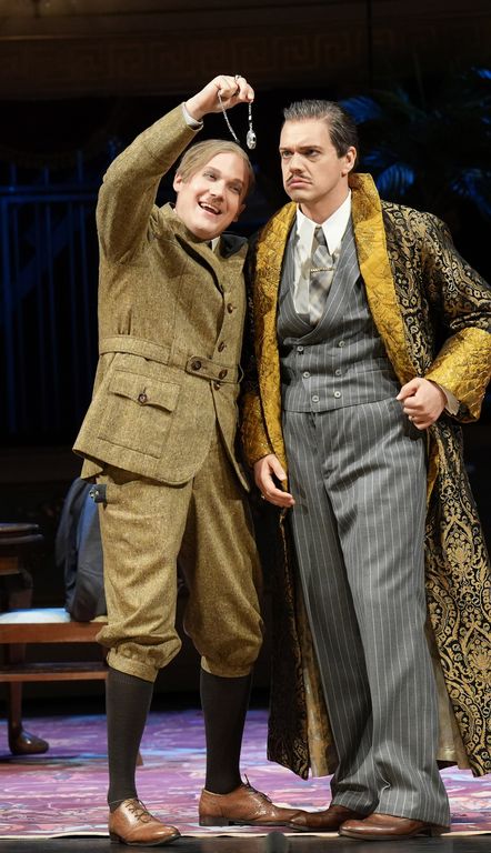 Cette recommandation s'étend au ténor David Fischer, interprète d'Alfred, et actuellement membre de l'ensemble du Deutsche Oper am Rhein. Le personnage qu'il incarne dans la production est celui d'un ténor alpha, fournisseur infatigable de notes aiguës qui témoignent de la générosité de ses attributs masculins (ce n'est pas pour rien que Rosalinde, extatique, admire les vertus de « son organe »). Avec cela, ses cheveux rigoureusement peignés en arrière avec de la gomina et son visage poudré de blanc comme s'il s'agissait du prince Calaf, nous présentent la figure du galant prototypique des années Weimar, une figure fantomatique mais non moins répandue par le cinéma et le marketing de l'opéra, à mi-chemin entre Rudolf Valentino et un jeune Richard Tauber. Notre David Fischer n'est certainement ni l'un ni l'autre, et ne prétend pas l'être, mais il se consacre corps et âme à l'incarnation de son personnage, avec une voix lumineuse, ferme et dotée de la générosité que les situations exigent, qu'il s'agisse de chanter la Namenlose Freude de Florestan, ou d'aborder le rôle de Tristan, celui de Chénier ou celui du Duc de Mantoue. Avec le sens de l'excès, de l'absurde et en même temps de l'élégance que ces musiques, chantées dans de tels contextes, exigent.