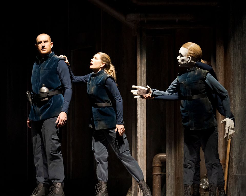 L’idée de Habjan est assez claire : il y a des hommes comme Rocco, qui dans le monde idéalisé de Beethoven se transforment au contact d’un rais de Lumière qui s’appelle Fidelio-Leonore, il y a ceux qui resteront mesquins et médiocres, Jaquino, Pizarro. Il y a les laissés pour compte et les victimes malgré elles, Marzelline. Et les deux héros sont des emblèmes, essentiellement Leonore, plus que Florestan.