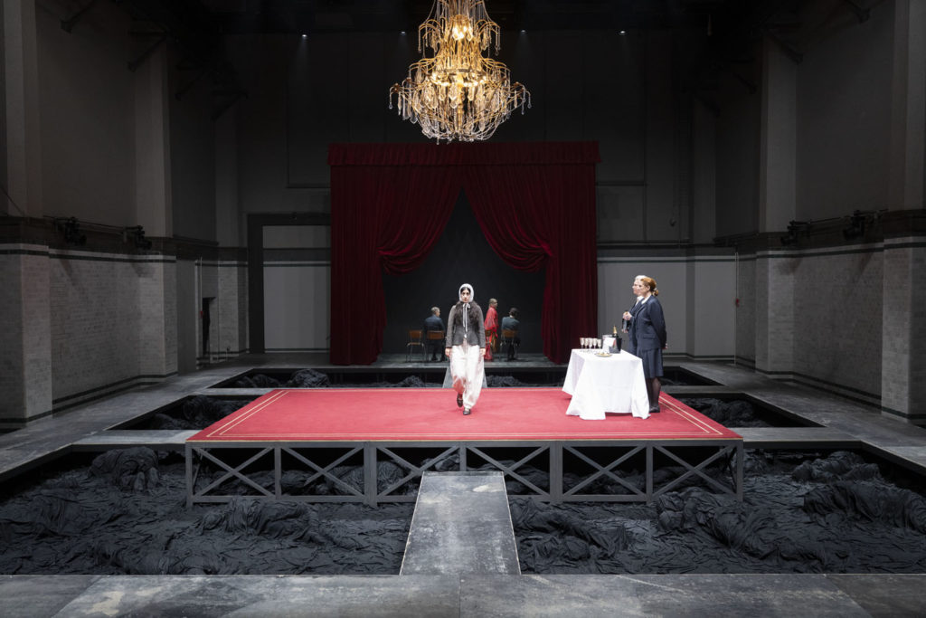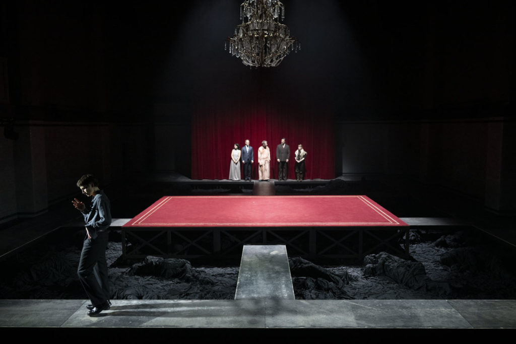 On n’attendait pas Mattias Andersson sur le monologue de Claudius, qu’on aurait imaginé escamoté. Mais il s’agit finalement de lui donner un peu de volume ou de l’éclairer autrement : il est aussi habité de remords. À moins que ce ne soit qu’un rôle de plus pour ce Claudius central et habité (dépassé ?) par la performance de Shanti Roney. Une piste nous ferait pencher pour cette dernière option : Claudius est le personnage qui se change le plus, arbore toujours davantage de tenues, ce qui reflète ses caprices et son pouvoir mais aussi son côté protéiforme.
