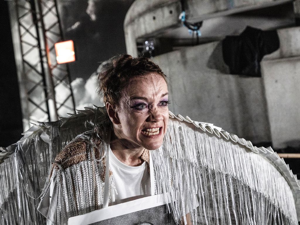 Il y a comme nous l’avons déjà souligné un côté « revue » et les costumes pailletés d’Adriana Braga-Peretzki n’y sont pas étrangers, faits de brics et de brocs, plastique, plumes, dentelles, cuir, latex, velours : aucun ne laisse indifférent parce que chacun est juste, pour le moment où il est endossé et que chacun fait théâtre dans sa singularité